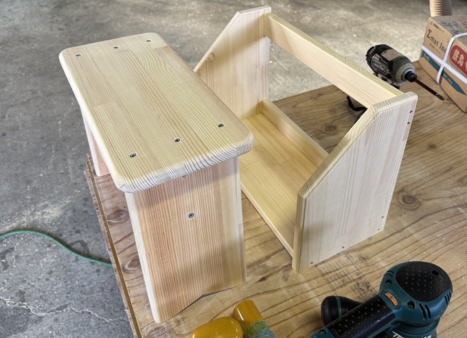 最終日は生徒さん、いつのまにか大工さんと一緒に椅子と本棚を仕上げていました。これは良い思い出になりそうです♪